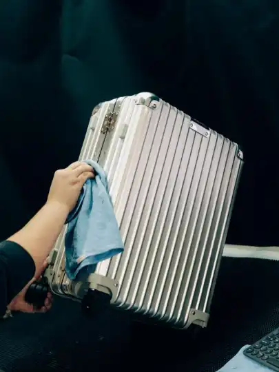 The hard shell of a Rimowa suitcase